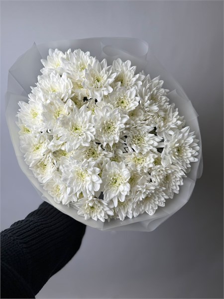 Нежные и романтичные, классические кустовые хризантемы. Монобукет станет прекрасным подарком.