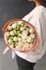 Белоснежный букет из кустовых роз. Упаковка из крафта и тишью с атласной лентой.