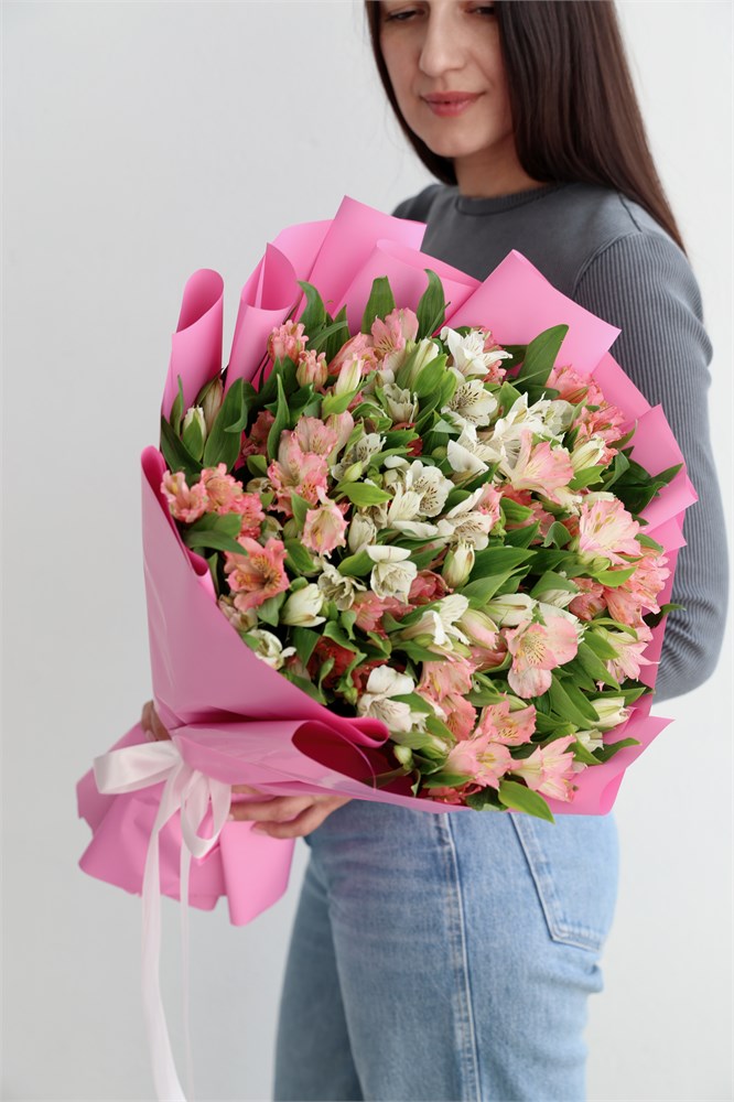 Вау букет из 35 альстромерии микс в стильной упаковке.